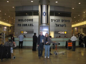 March 5, 2008 we arrived at Ben Gurion Airport, bleary-eyed and suffering from jet lag around 7:30 p.m. or 19:30 Israeli time. (They keep military time, which took a bit of an adjustment when reading the tour bus clock.) Our flight was delayed due to weather in Detroit and Atlanta. I have never seen such black clouds up close and personal. Outside our window the sky was a sea of black with an orange tint bracketing the horizon.