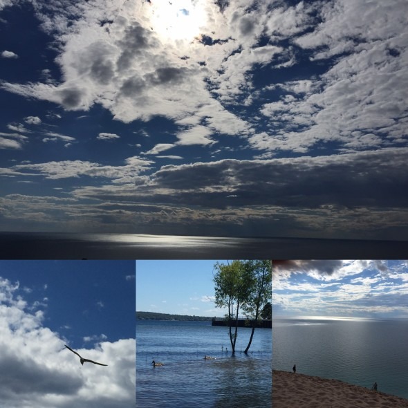 We just returned from a mini vacation to Traverse City, a town on the northwestern side of our state. We were guests at my sister’s house, which is set apart in a peaceful subdivision where deer roam the backlot and little yellow and red finches feed off their deck. Summer is a beautiful time to visit this city, which happened to be hosting the annual film festival that week. (We didn’t attend any films–too many beaches to visit.) The lakes around Traverse City are the purest blue-green waters I’ve ever seen, far different than my beloved Pacific Ocean. The sand dunes dot various shorelines, bluffs, lighthouses, beaches, and more make this area a perfect getaway for the hurried and frazzled lives we live down state (southeastern lower MI where we live).
