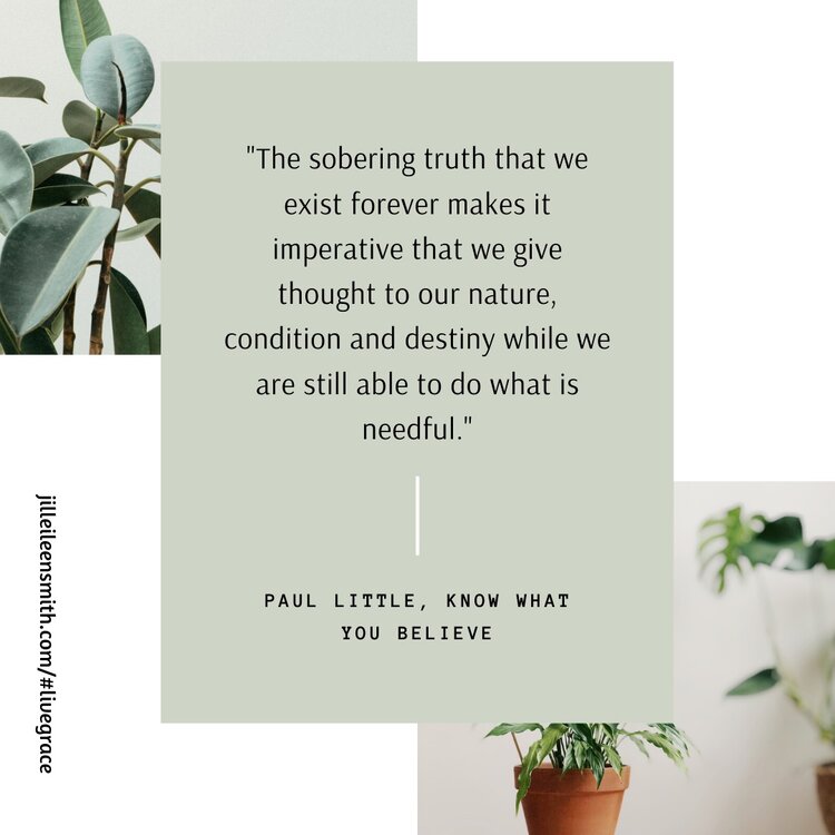 “The sobering truth that we exist forever makes it imperative that we give thought to our nature, condition and destiny while we are still able to do what is needful.
