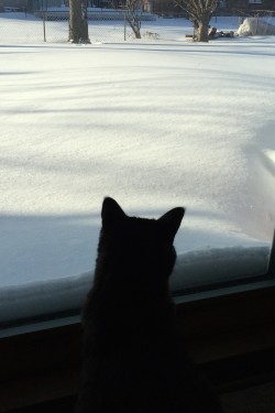And then there is Tiger. Sweet boy that he is, seems to have spring fever of his own. Not even the birds and squirrels come out much in this weather and no cats have pranced through our yard to give him someone to “talk” to.